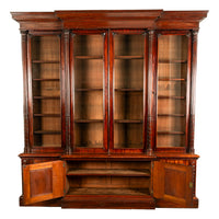 Monumental Antique Irish Carved Mahogany Breakfront Bookcase Bibliotheque 1850