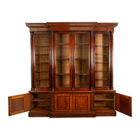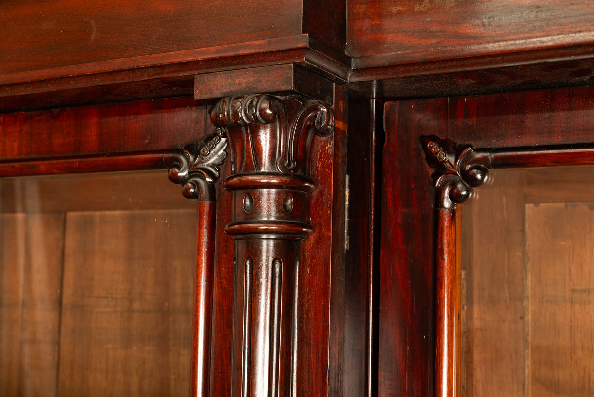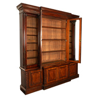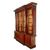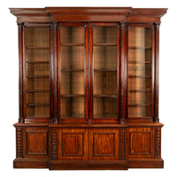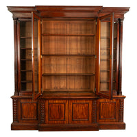 A very stately & monumental antique Irish mahogany breakfront bookcase/bibliotheque, circa 1850.