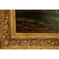 Pair Antique 19th Century Oil Canvas Paintings Dutch Marine Nautical Ships Seascapes by F. Lohse 1870