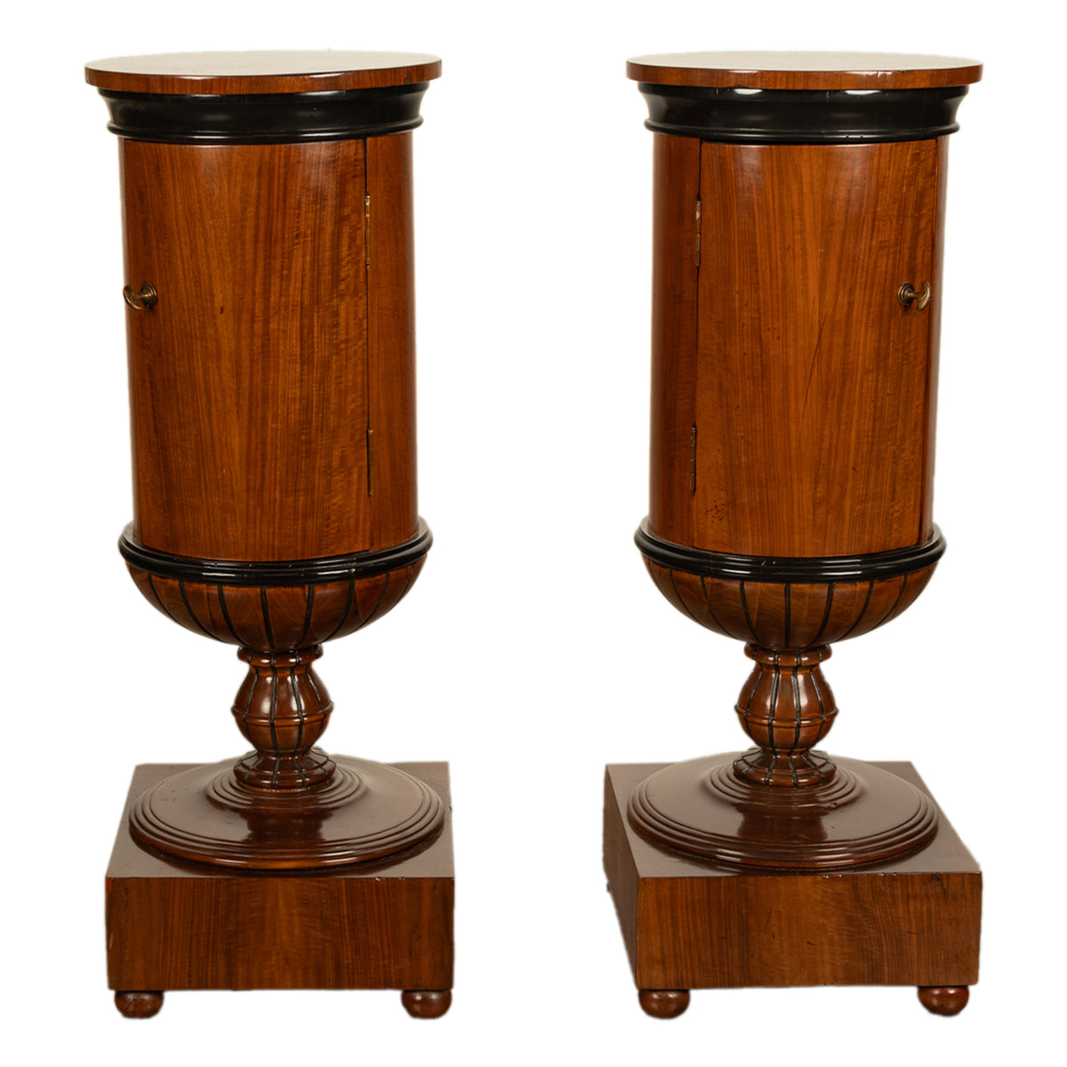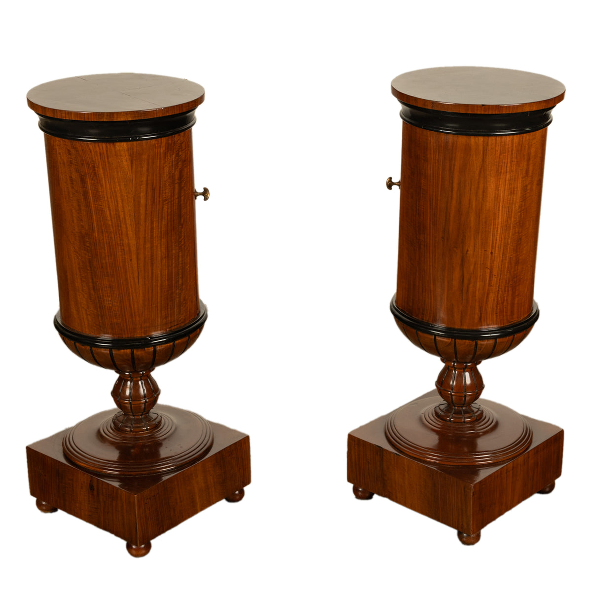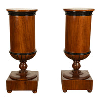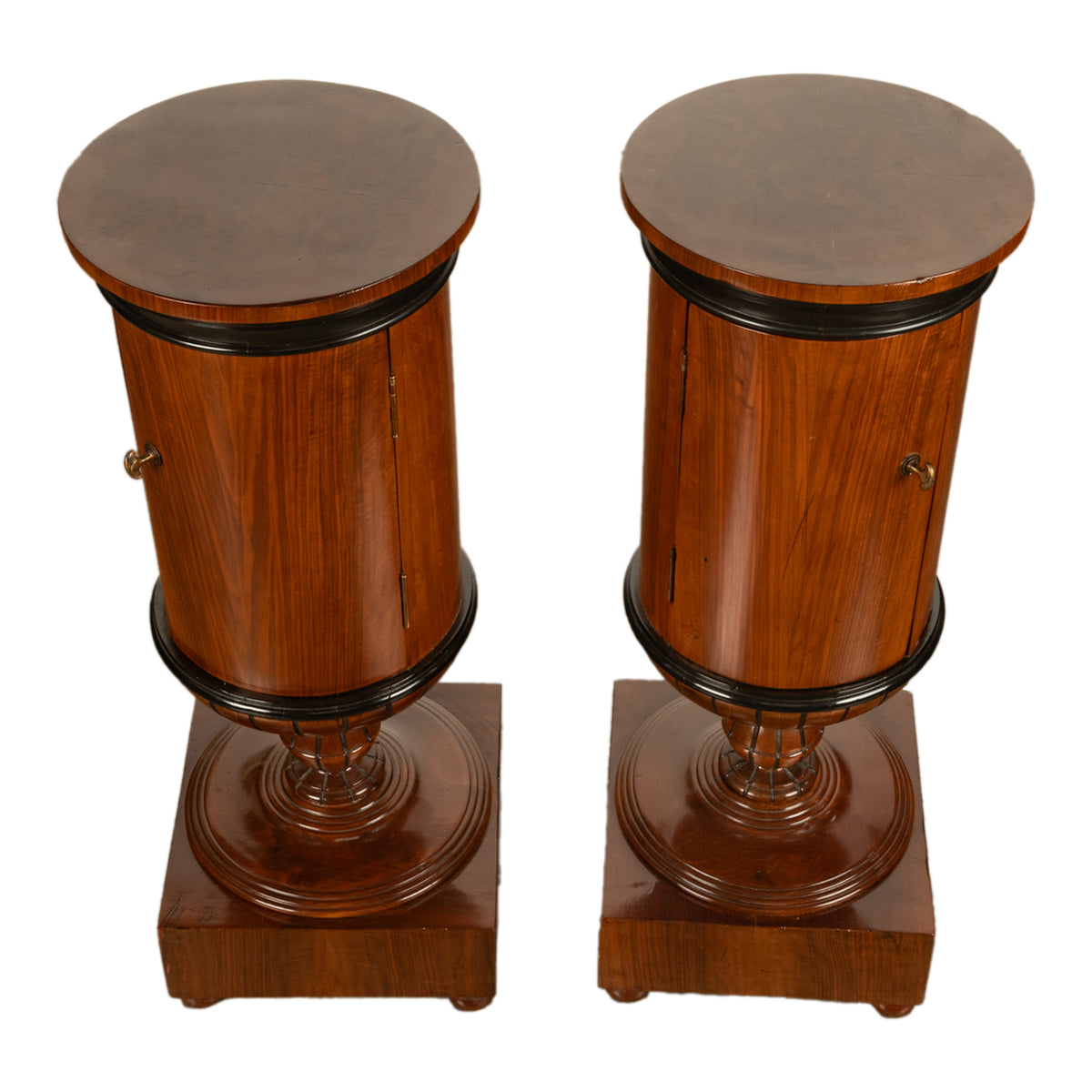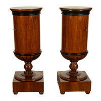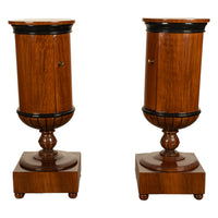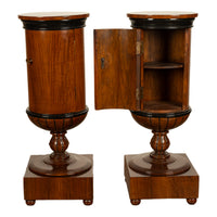 Pair Antique Austrian Walnut Biedermeier Drum Pedestal Cabinets Nightstands 1830