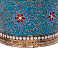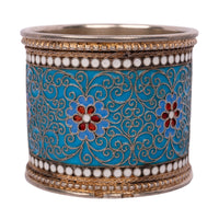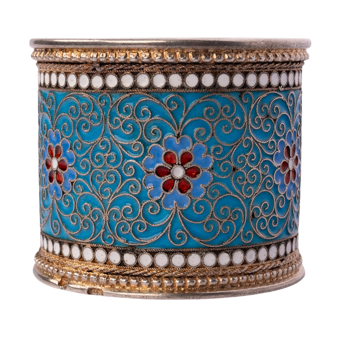 Antique Russian Imperial silver gilt cloisonne enamel napkin ring holder, silversmith; M.F. Sokolov, Moscow, 1896.