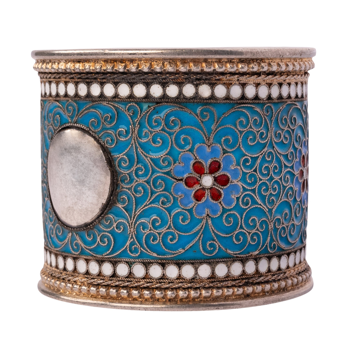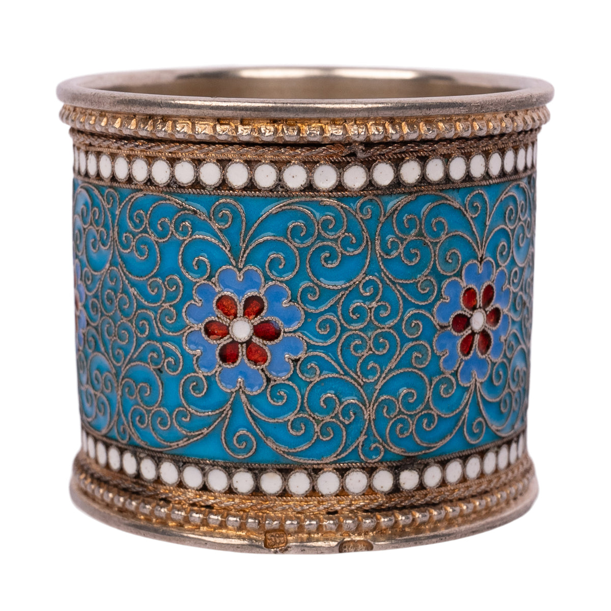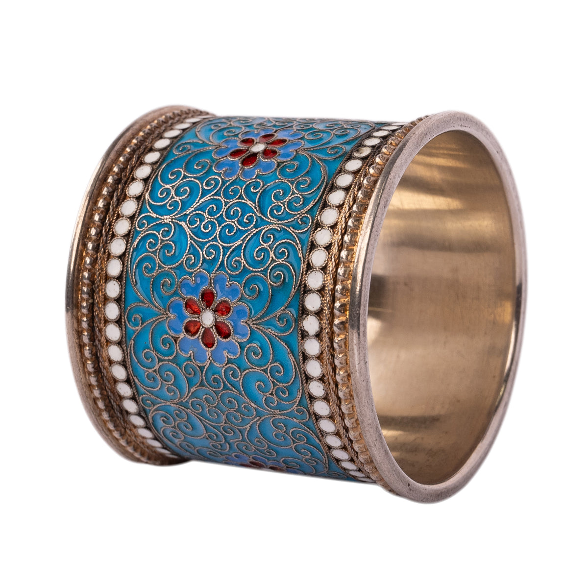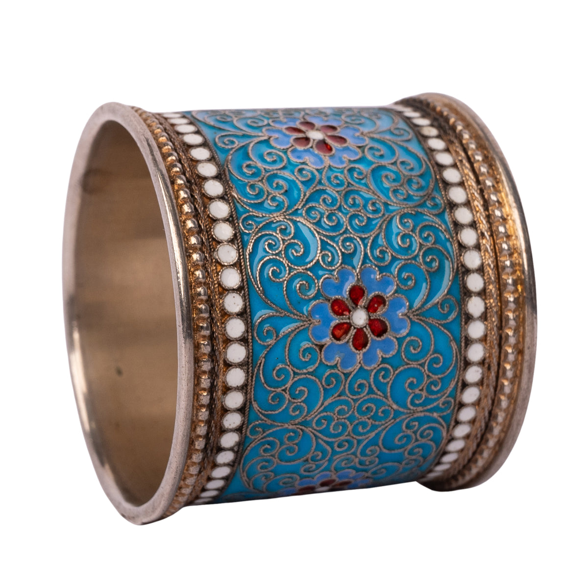 Antique Imperial Russian Silver Gold Cloisonne Enamel Napkin Ring Moscow 1896