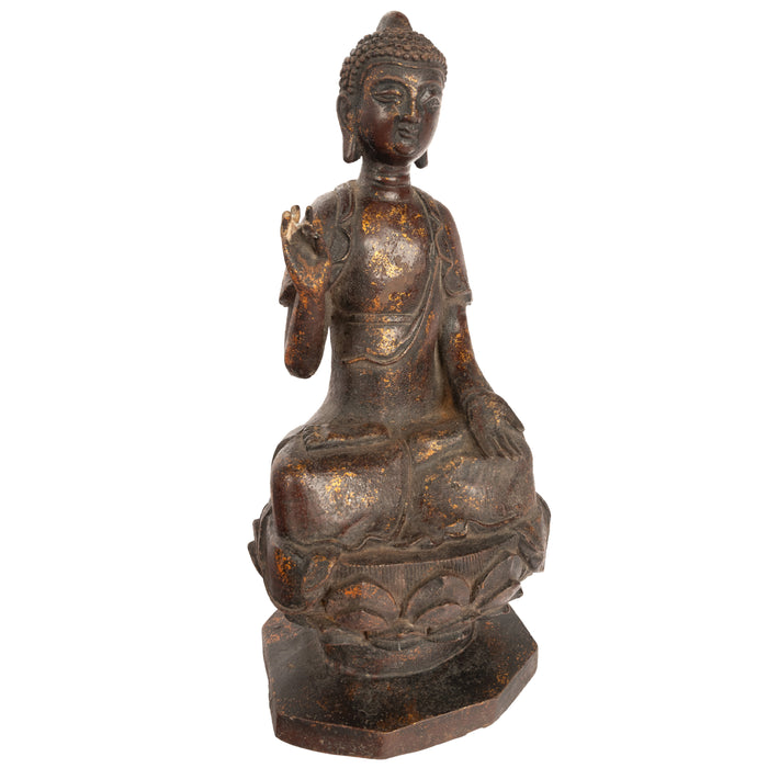 Antique Chinese Ming Dynasty Gilt Bronze Seated Protection Buddha Statue Circa 1600