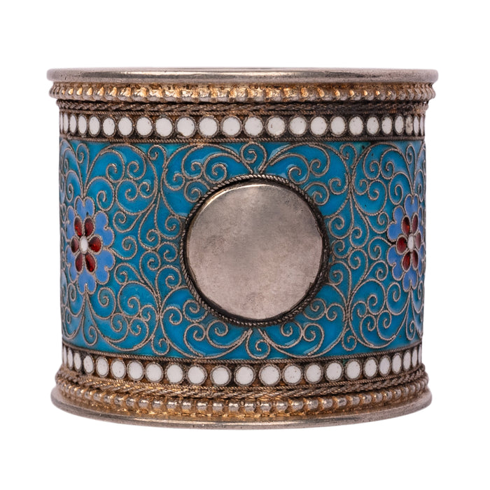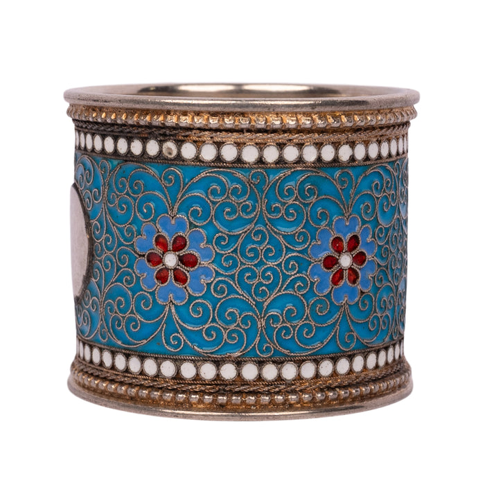 Antique Imperial Russian Silver Gold Cloisonne Enamel Napkin Ring Moscow 1896