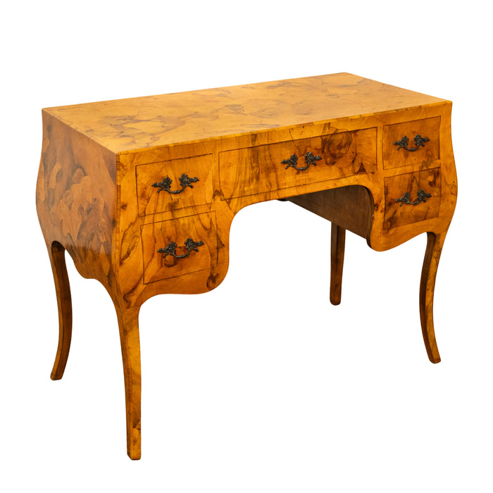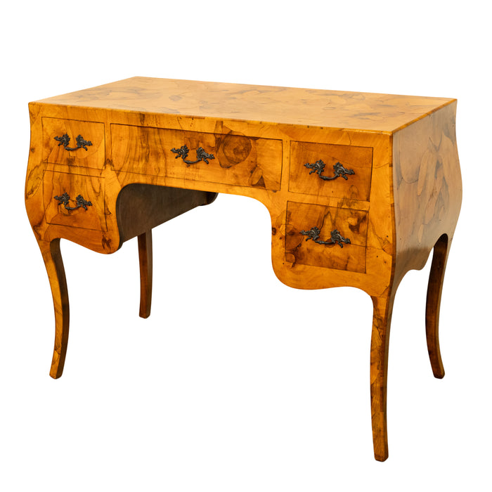 Antique Mid Century Italian Burl Oyster Olive Wood Patchwork Bombe Shaped Desk