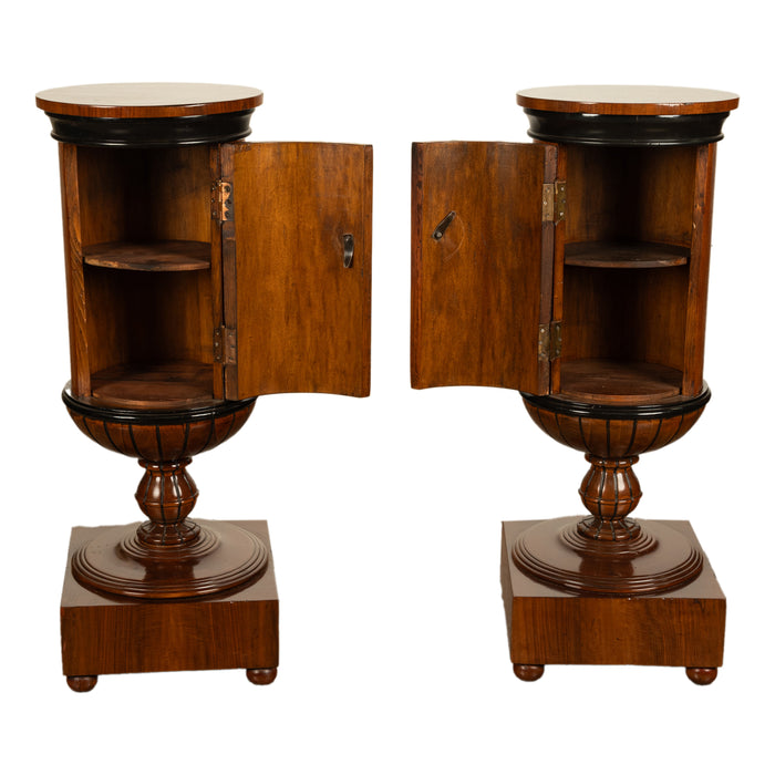 Pair Antique Austrian Walnut Biedermeier Drum Pedestal Cabinets Nightstands 1830