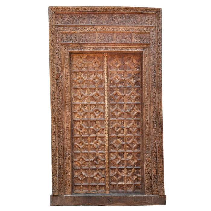 Antique 18th Century Indian Carved Doors & Frame Rajasthan 9.5' x 5.5' Circa 1750