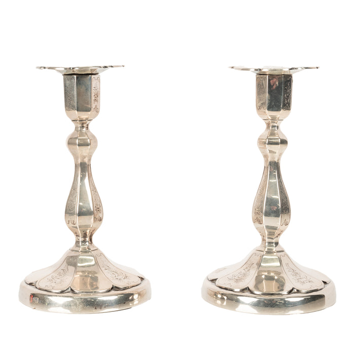 Pair Antique 19th Century Swedish Gustavian Sterling Silver Engraved Candlestick Holders 1864
