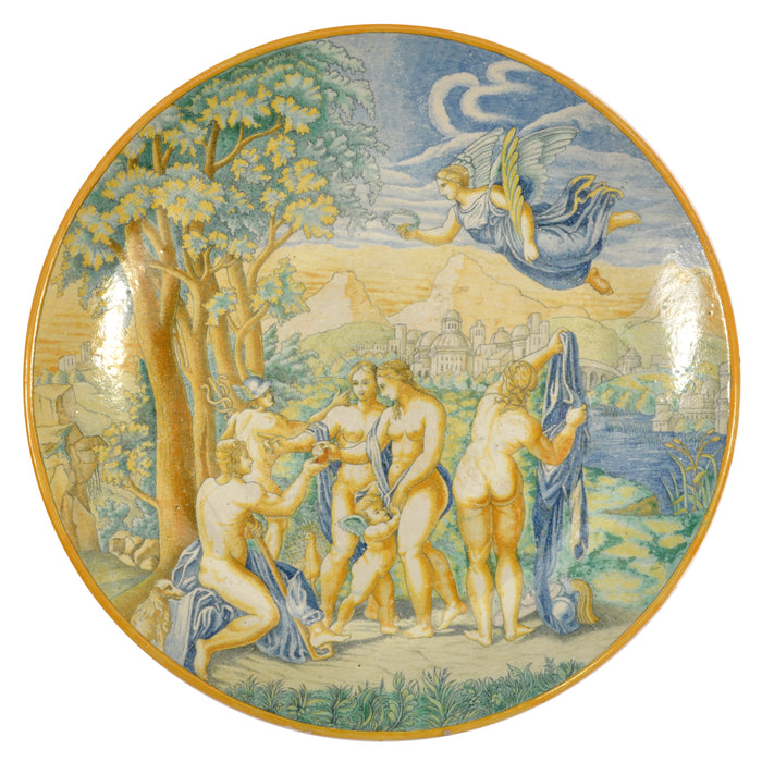 Antique Italian 18th Century Maiolica Faience Istoriato Charger Urbino, Circa 1800
