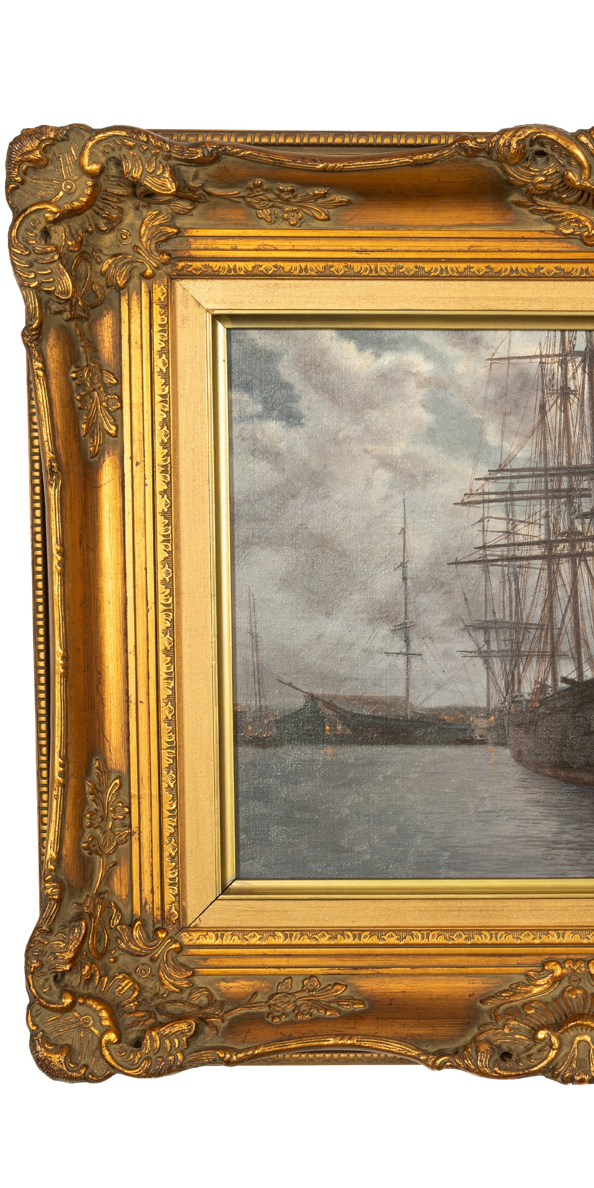 The painting is signed lower right and is housed in the original gilded frame, condition is excellent, this fine nautical painting is ready gto hang on your wall.