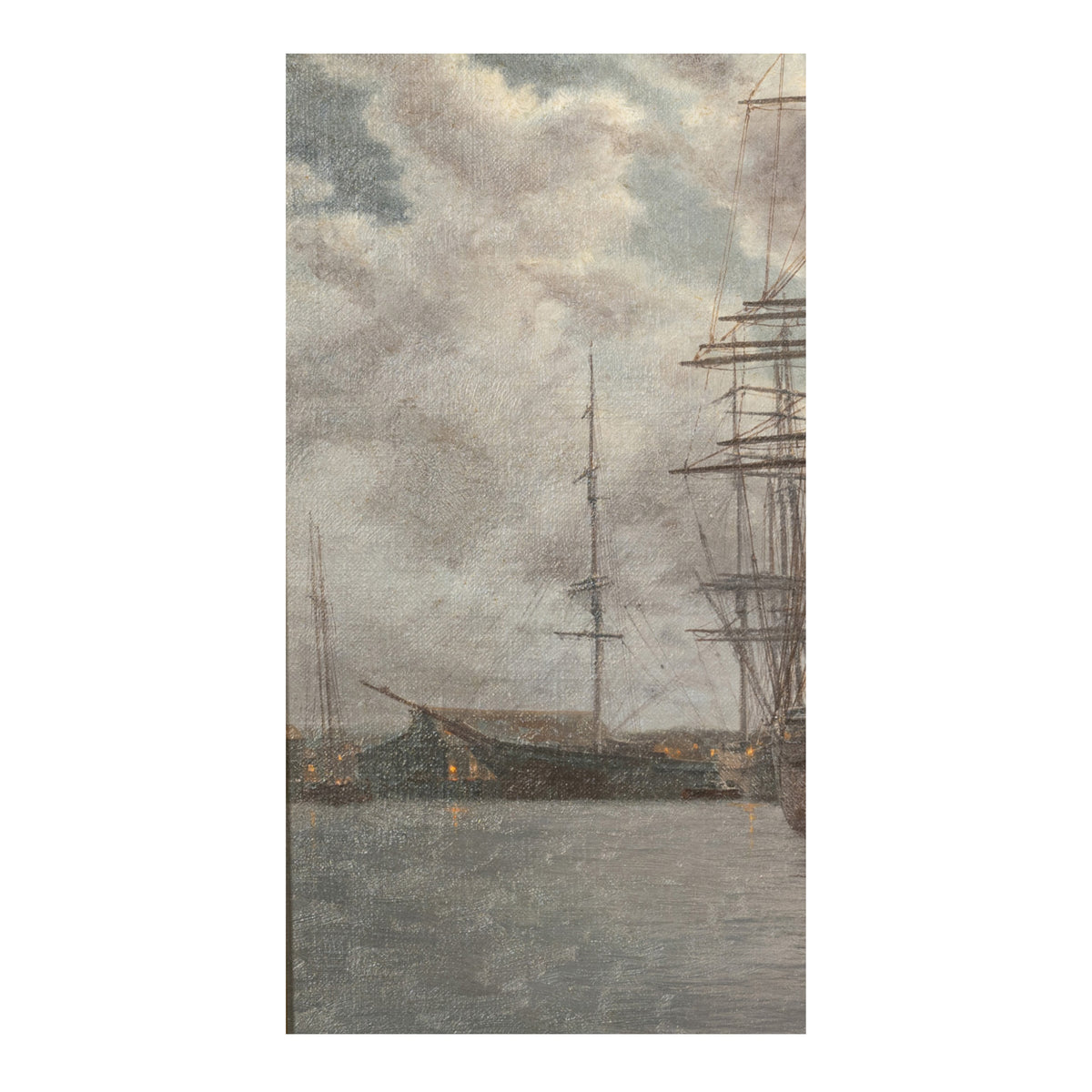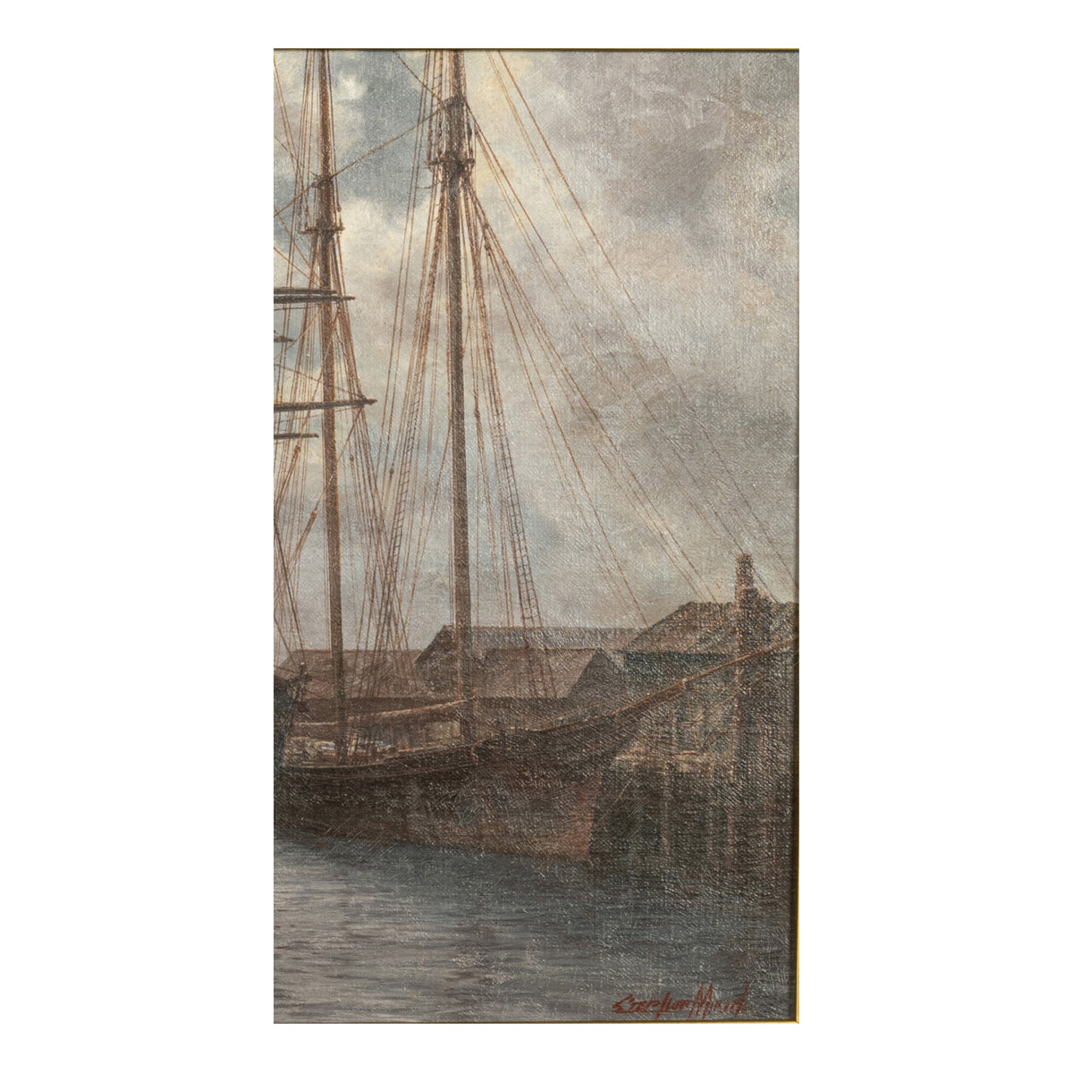 American Oil Canvas Nautical Marine Painting Sailing Ships in Harbor California By Stephen Mirich