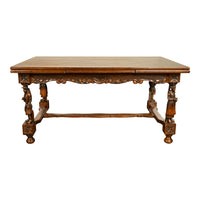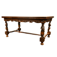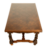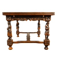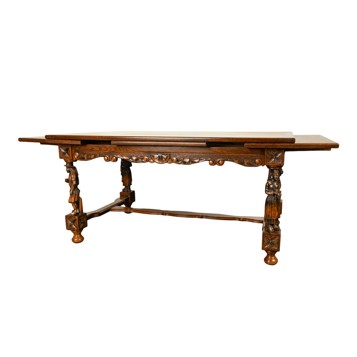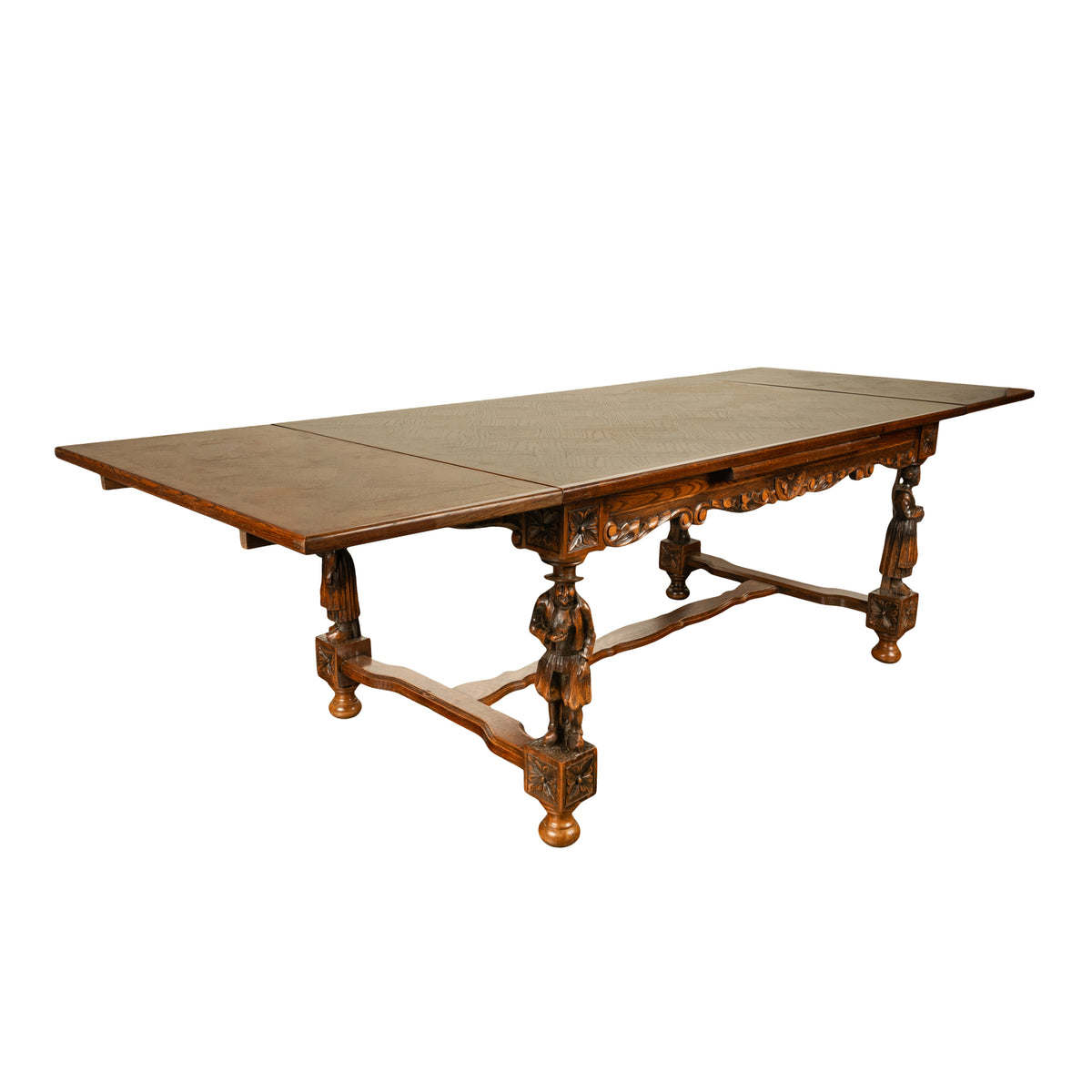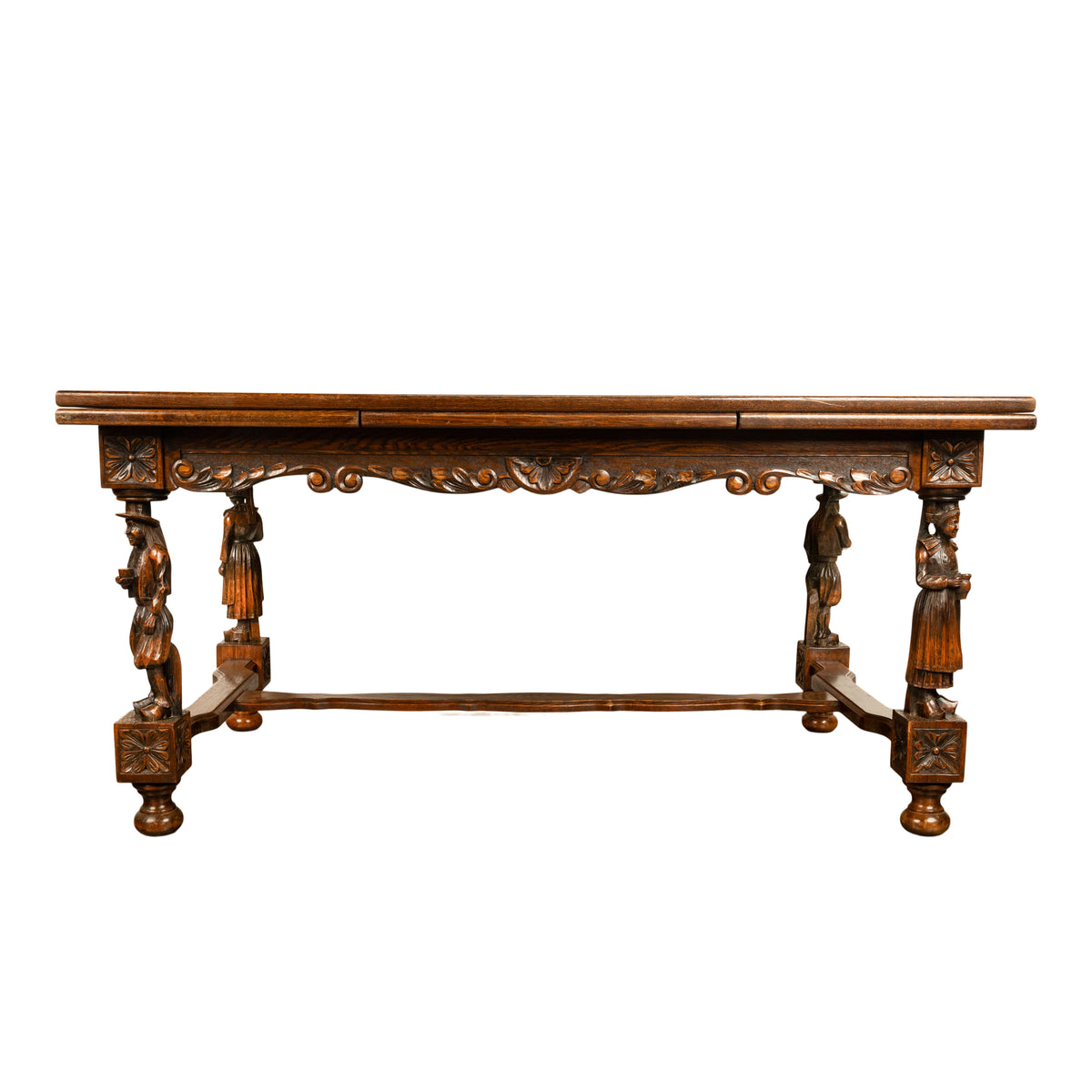 Antique Carved Figural French Breton Inlaid Dining Extending Table Brittany 1900