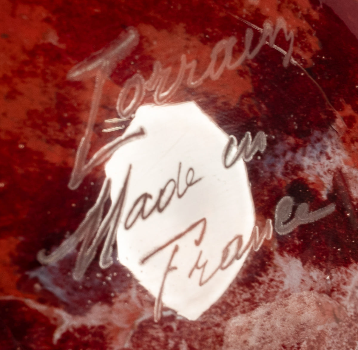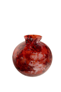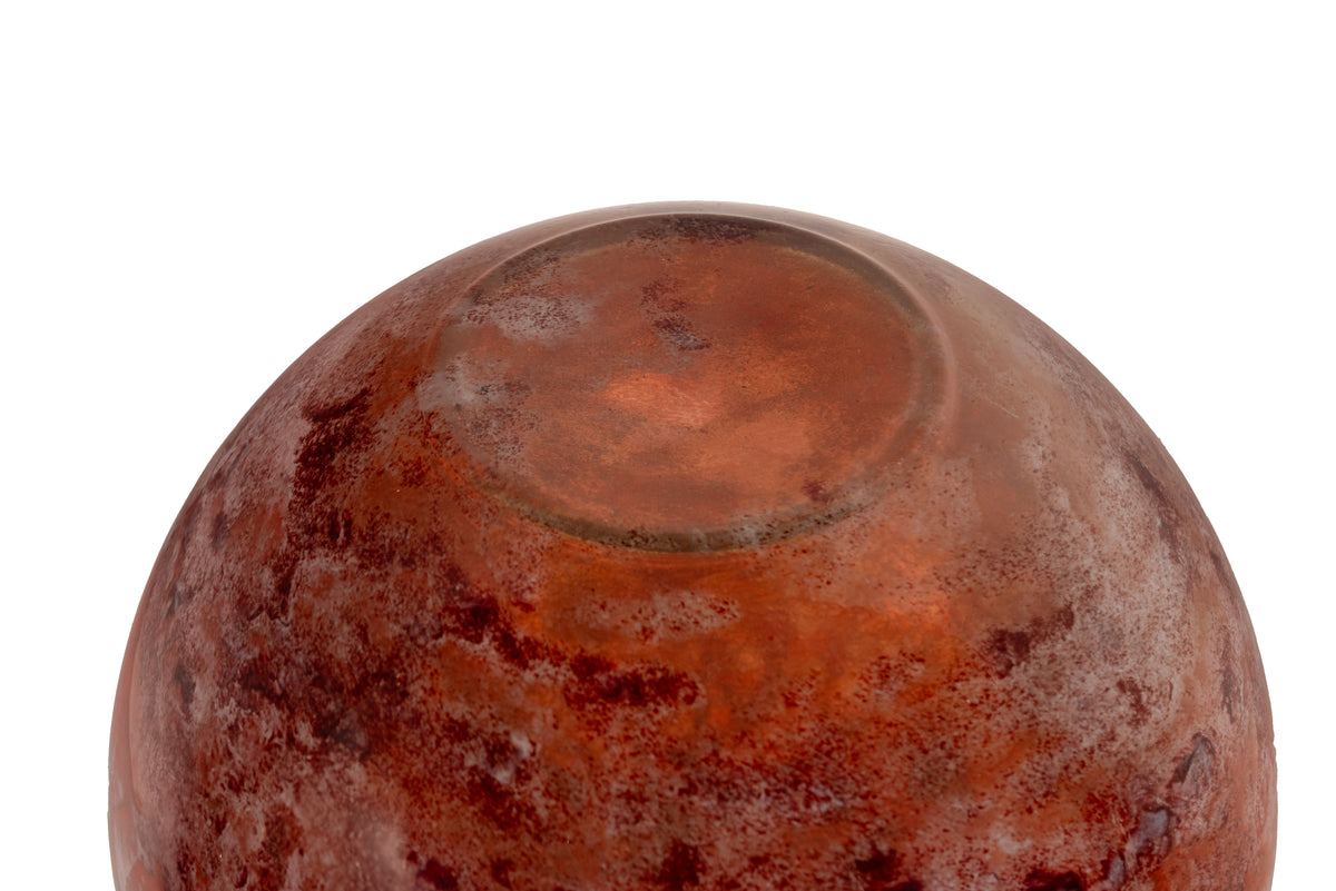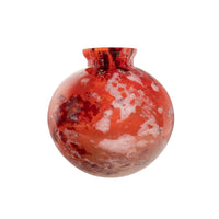 A very charming Art Deco French art glass vase, by Verrerie d'Art Lorraine for Daum, circa 1925. The globe shaped vase with a short flared neck, the vase having mottled decoration with a red ground with black and cream colored areas, the vase with an etched signature to the base "Lorraine Made in France". Condition is excellent. "Verrerie d'Art de Lorraine" glass company was created In 1867, the young Emile Gallé met Désiré Christian at the Schverer & Cie glass factory in Meisenthal. The two men continued to work together for thirty years. In 1894, when Emile Gallé created its own glass factory in Nancy, the glass artists of Meisenthal continued until the early 1900s for Burgun, Schverer & Cie, to create beautiful art glass under the name "Verrerie d'Art de Lorraine," Désiré Christian became manager of the works. Between 1898 and 1907, Désiré Christian, together with his brother and his son set up his own factory. He used his technical experience to created glass to rival that of glass created by Galle. Verrerie d'Art de Lorranine became part of the Daum company.