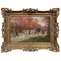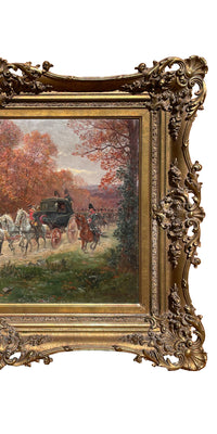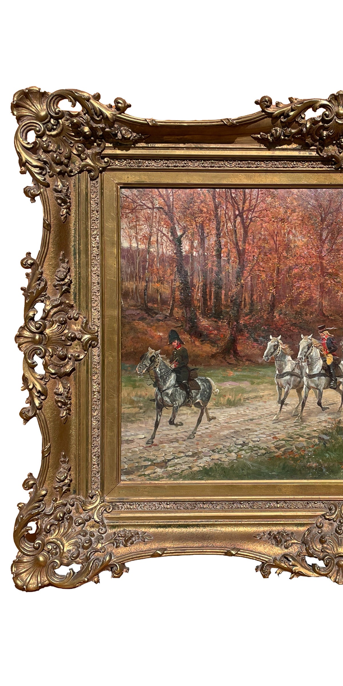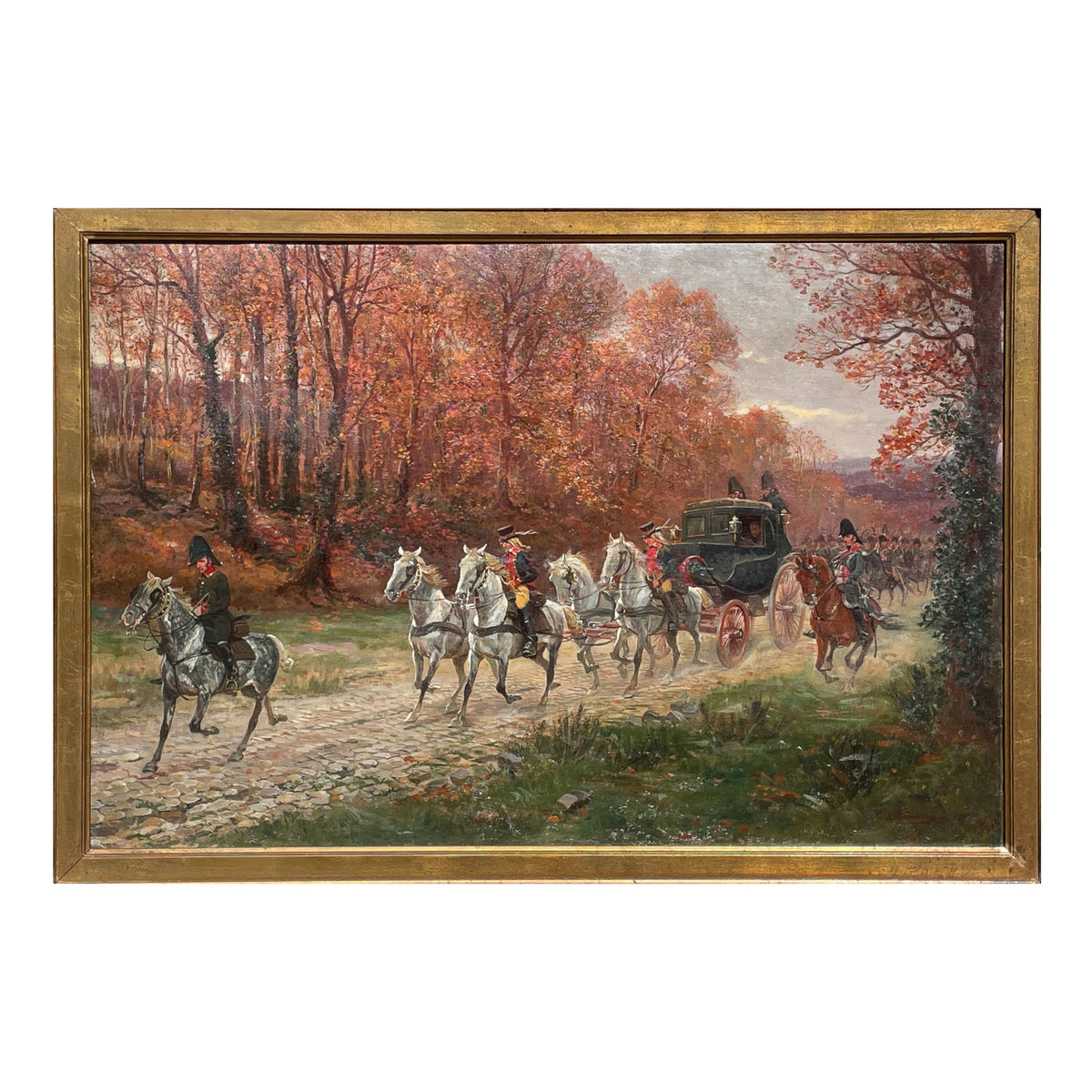 Antique French War Oil Painting Napoleon With His Army Generals Horse & Carriage by Raymond Desvarreux, 1906