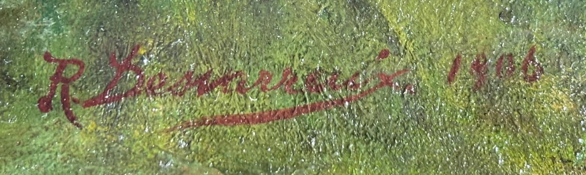 The painting is signed lower right "R. Desvarreux" & dated "1906", painted canvas, the painting is housed in the original gilded rococo style frame.
