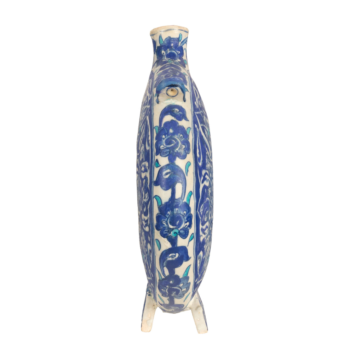 This is a particulary nice example of a blue and white Islamic Iznik style flask, circa 1600 and in good condition.