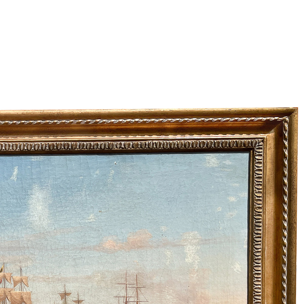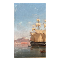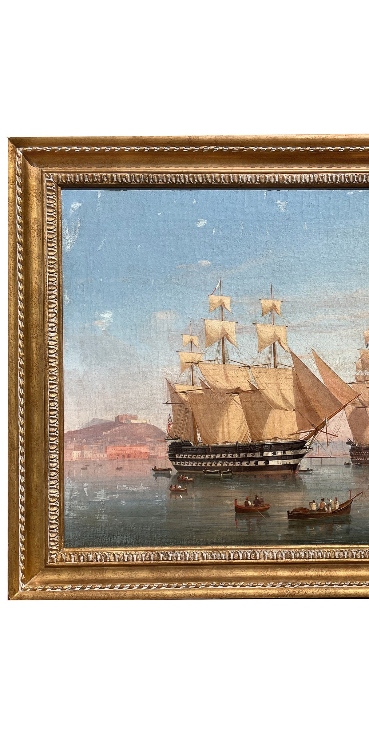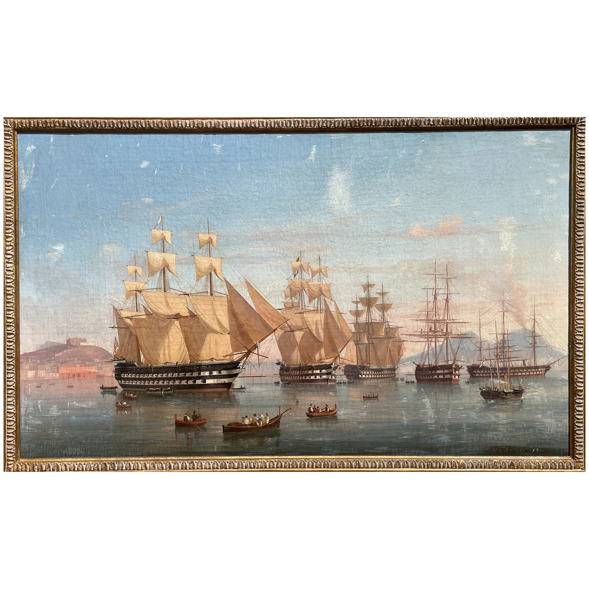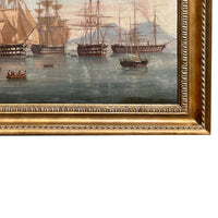 Antique Maritime Ships Oil Painting "British Fleet Bay of Naples" by Tommaso De Simone, 1860