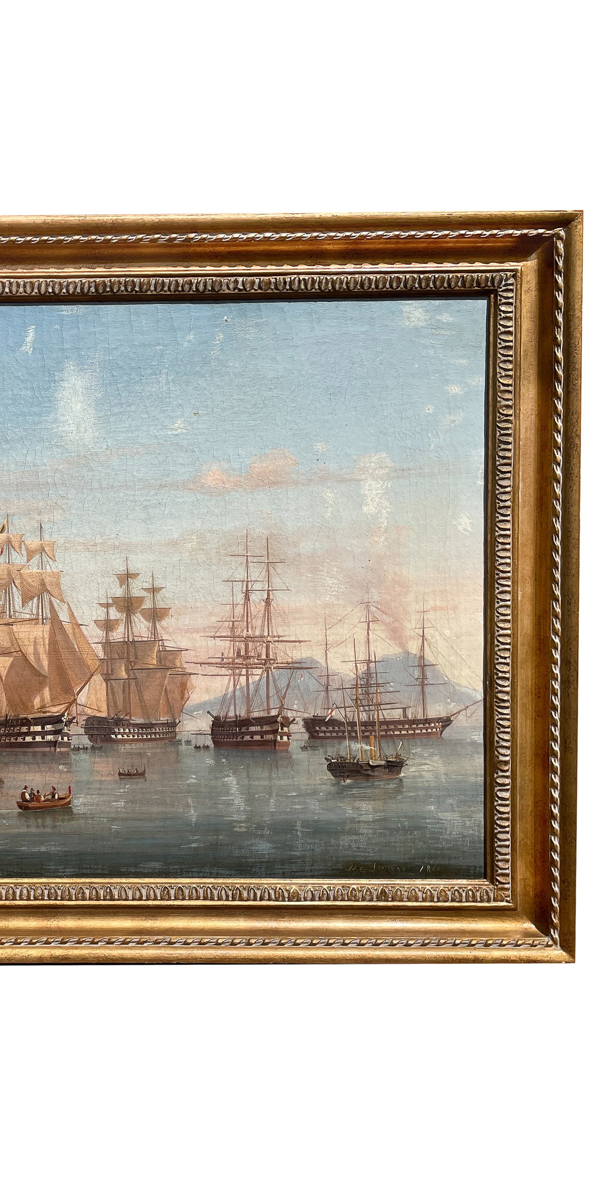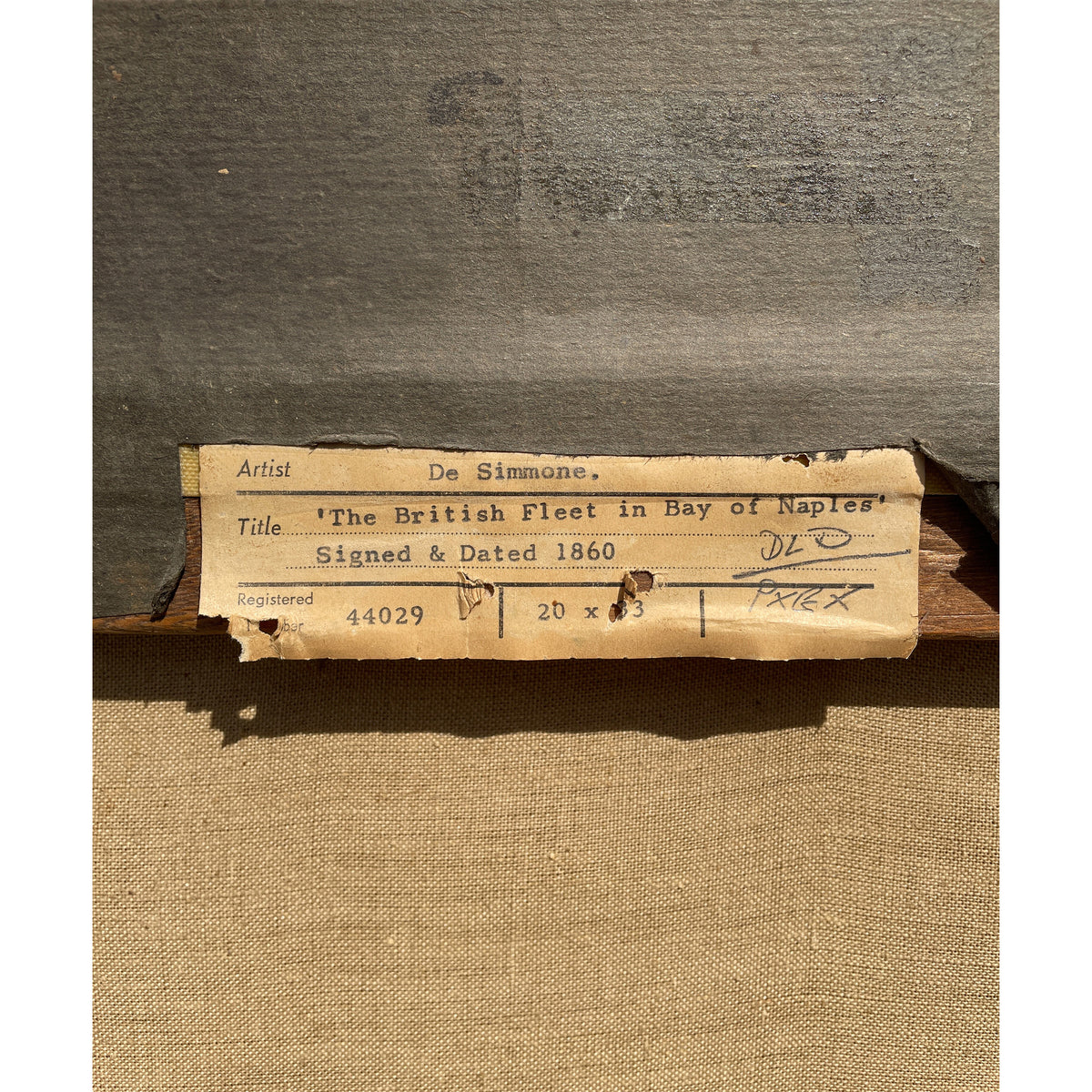 An important antique Maritime ships oil on canvas painting of " The British Fleet in the Bay of Naples", by Tommaso De Simone (1805-1888), signed & dated 1860.