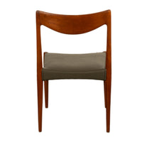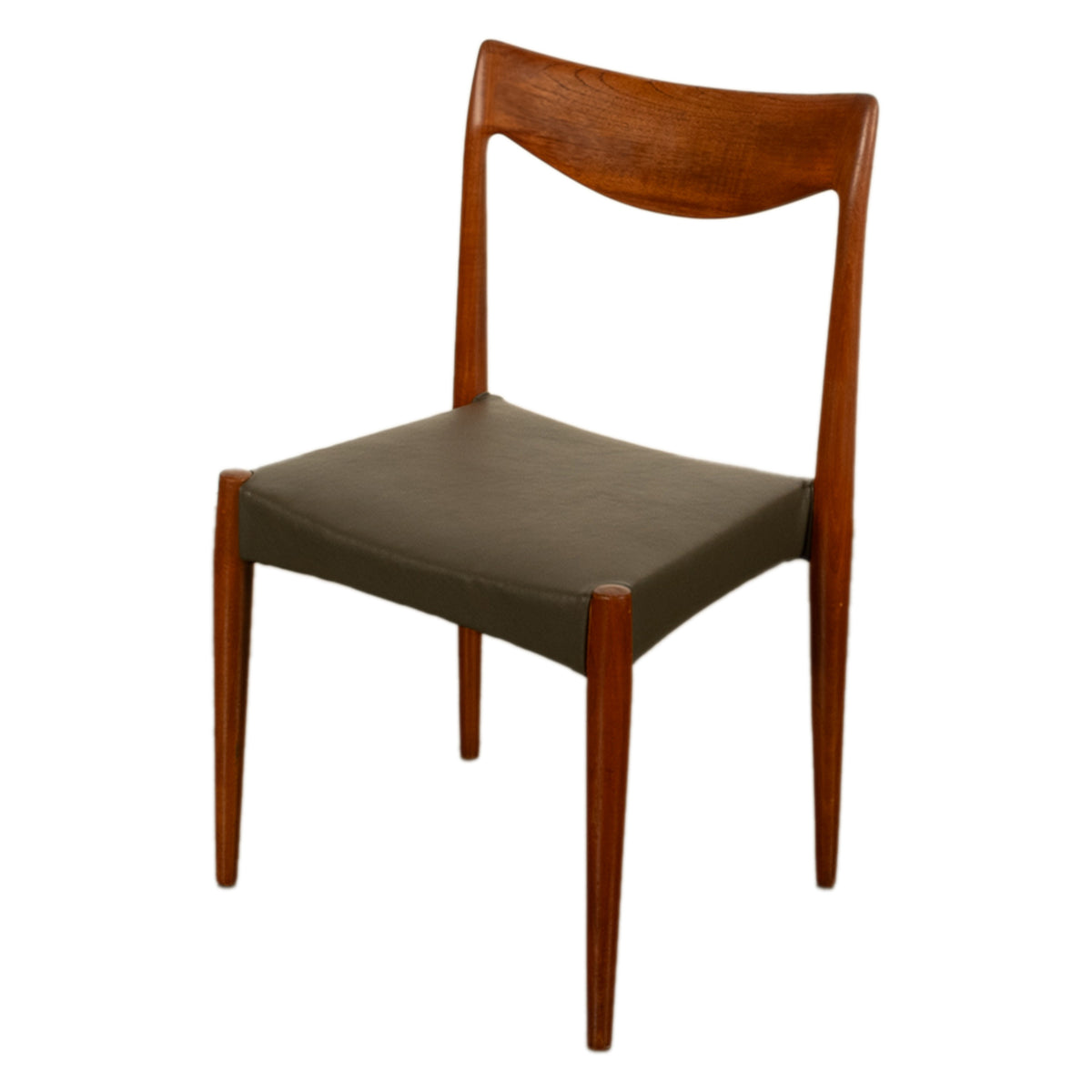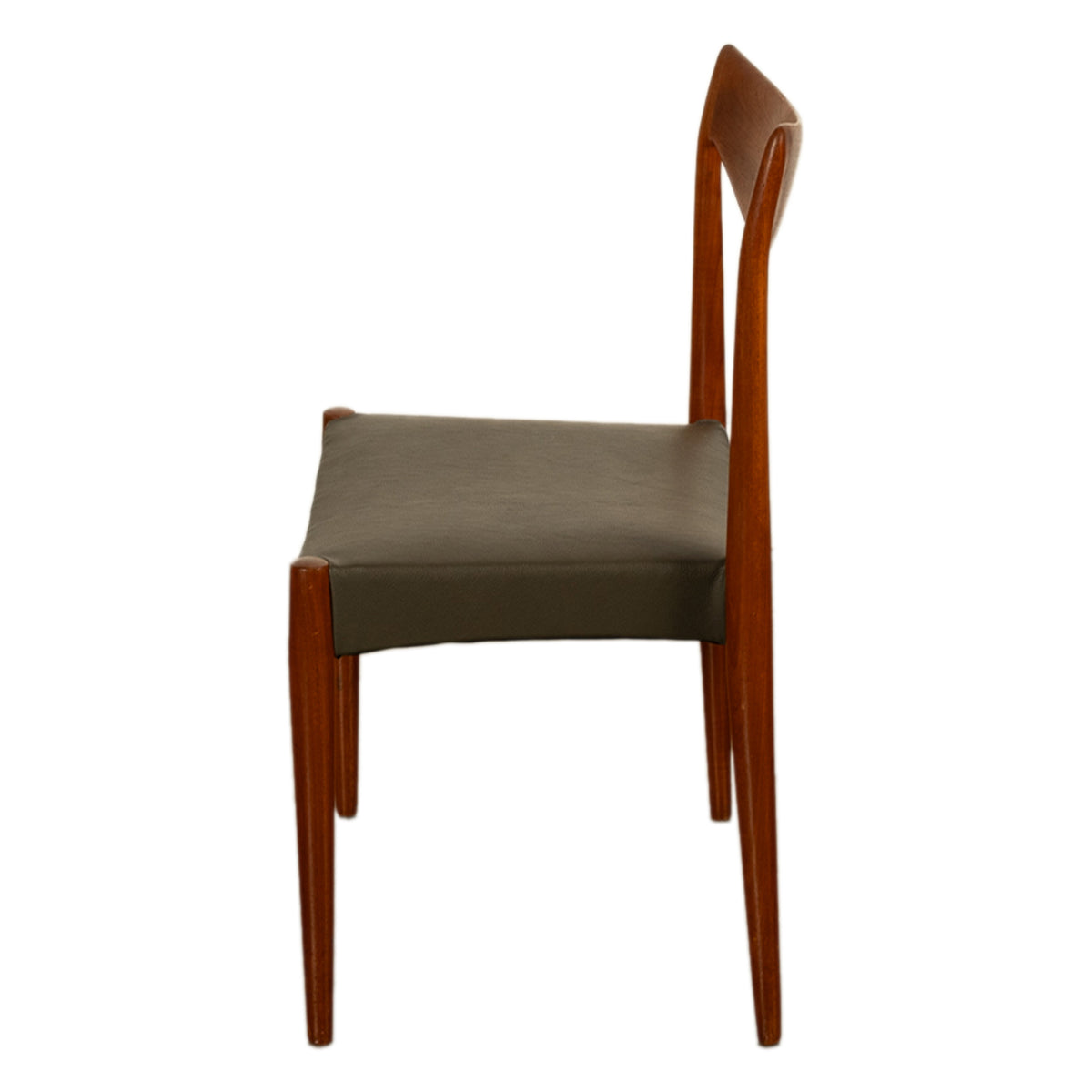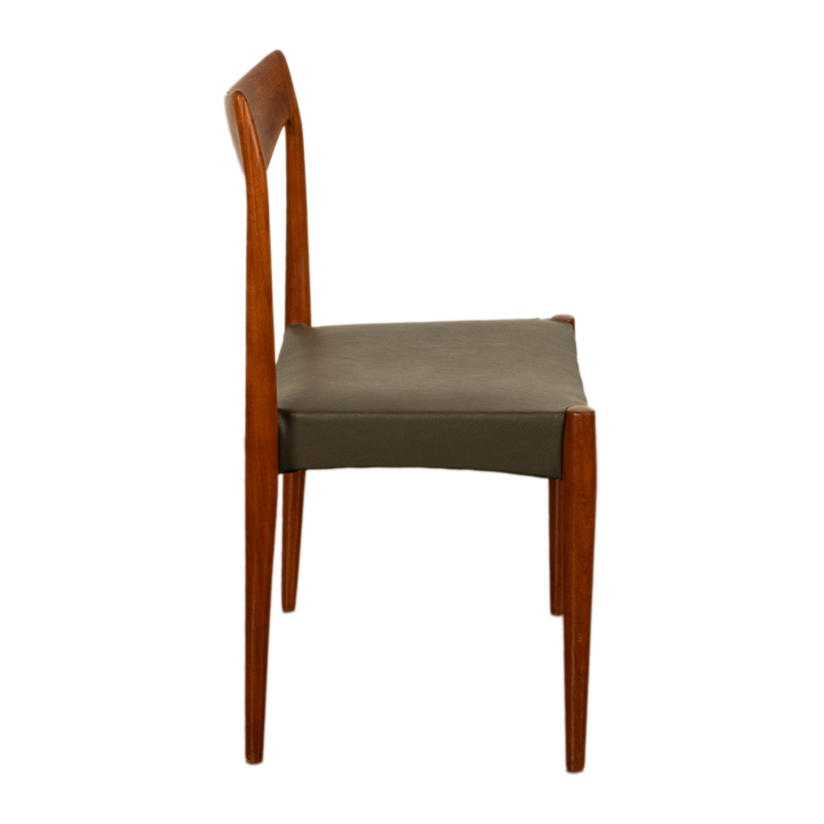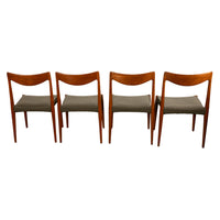This very sleek set of four original MCM chairs by Rasted & Relling, made of solid teak with sculpted back rests and raised on round subtly tapered legs.