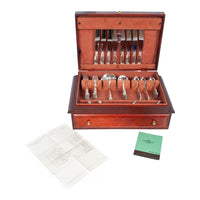 The set was purchased in 1950 in Copenhagen, the original paperwork, including the receipt & catalogue is present and so is the original mahogany canteen case that came with the silverware set.