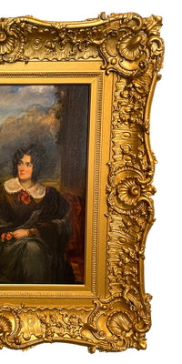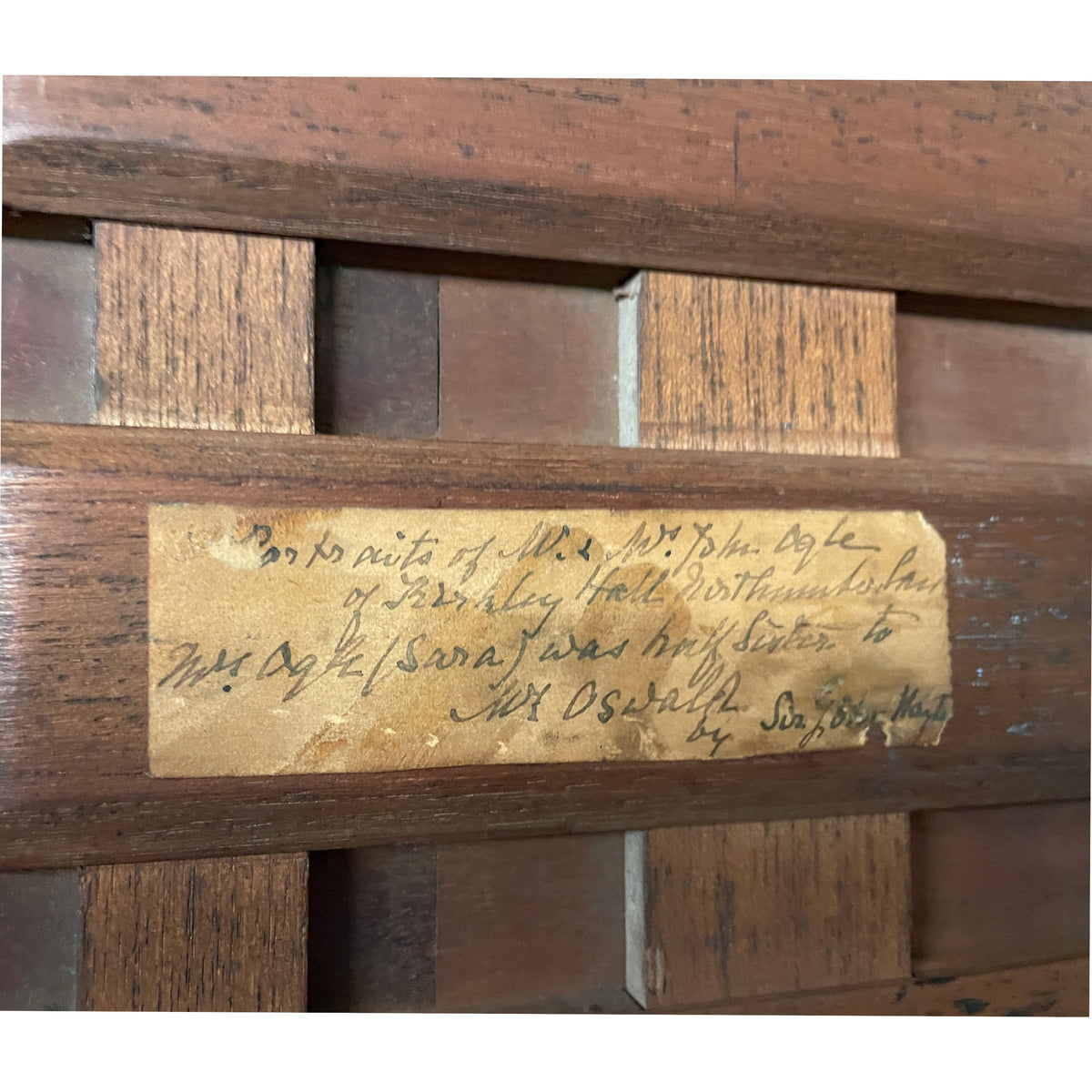 Sir John Hayter (1800-1895) was a very well respected & successful portrait artist who was long lived and very prolific. This is a particularly nice example of his work, portraying a beautiful young couple seated together and discussing a document. The identities of the couple are John & Sara Ogle (1798-1831) of Kirkley Hall Northumbria, he was the son of Reverend John Saville Ogle, he married Sara Agatha Miles (1799-1830) in 1828.