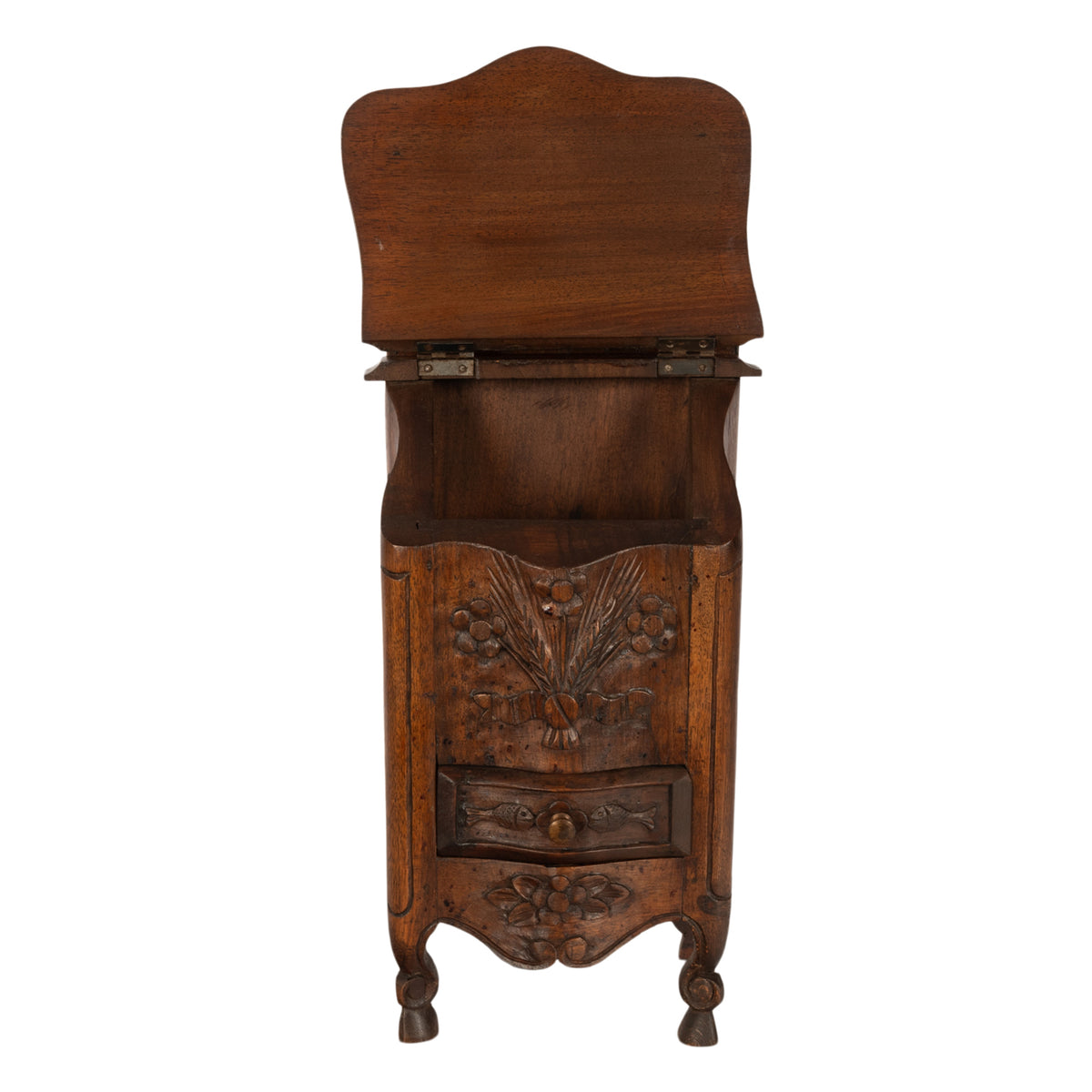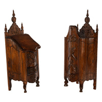 Pair Antique French Provincial Carved Walnut Kitchen Salt Flour Boxes Fariniere