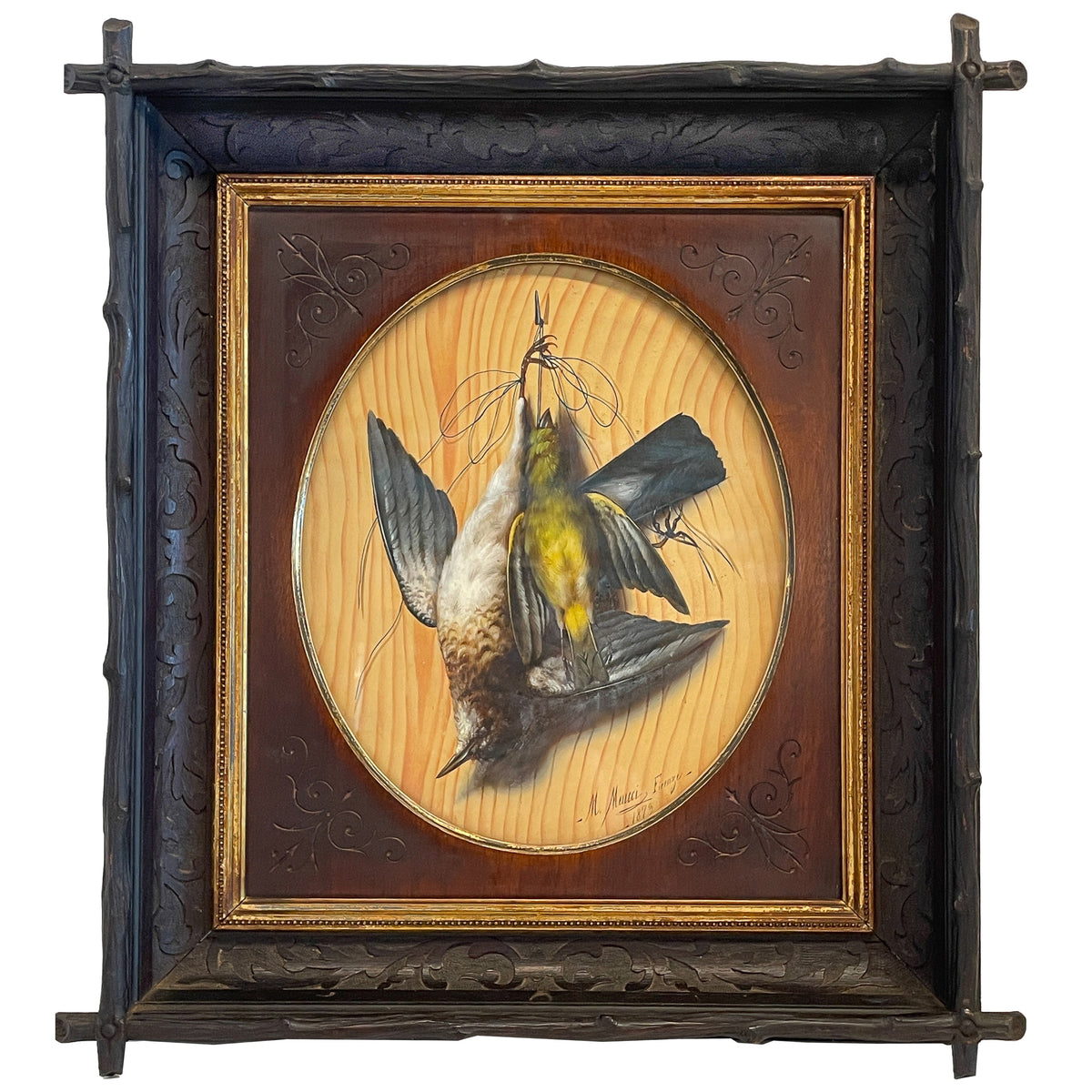 Pair Italian Still Life Trompe-l'œil Oil Paintings Dead Birds Firenze Italy by Michelangelo Meucci, 1873