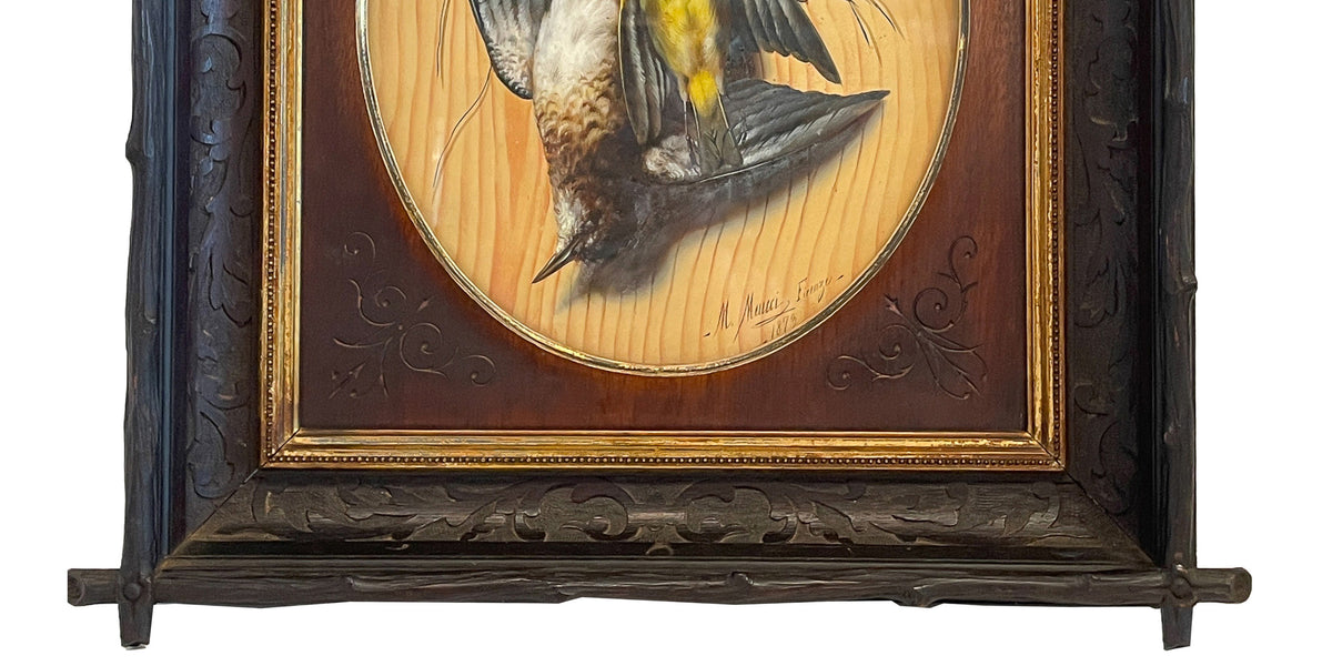 Michelangelo Meucci (1840-1909), was an artist active in Florance Italy and was known for his abilities in painting Still lives, nature morte and bird paintings, he very often employed the technique of Trompe-l'œil in French (Deceive the Eye). Meucci's paintings are housed in some of the most prestigious galleries on the planet including; Musee d'Orsay Paris, Georgian State Museum, Museums of Florence, and many others.